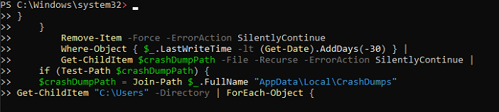 $crashDumpPath = Join-Path $_.FullName "AppData\Local\CrashDumps"